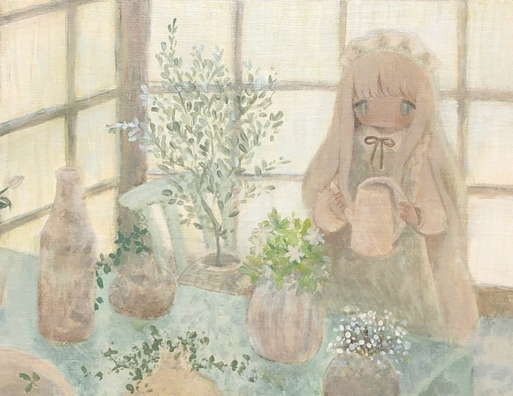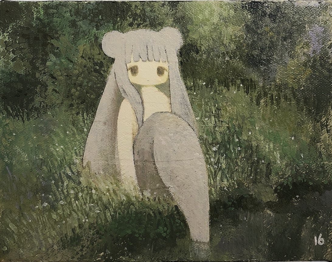 Japanese artist 16mei consolidates in her artworks the symbolism between beautiful things and terrifying dreams. As themes, she is using three childhood fears: plants, water surfaces and dreams. 16mei’s purpose is to portray a balance between beauty and fear in a comfortable way.